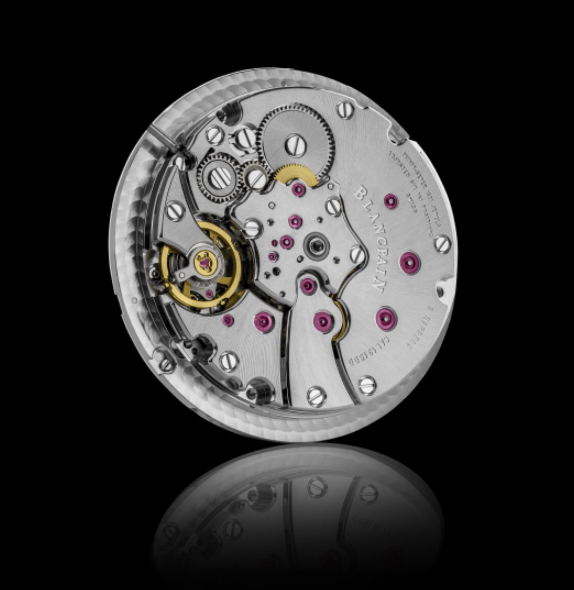 The calibre is called 1315DD, standing for the excellent 5 day automatic movement known from the Fifty Fathoms with an additional Day/Date module added.